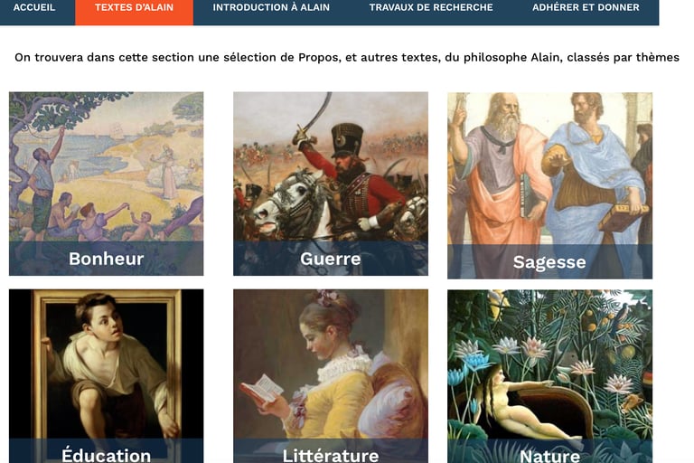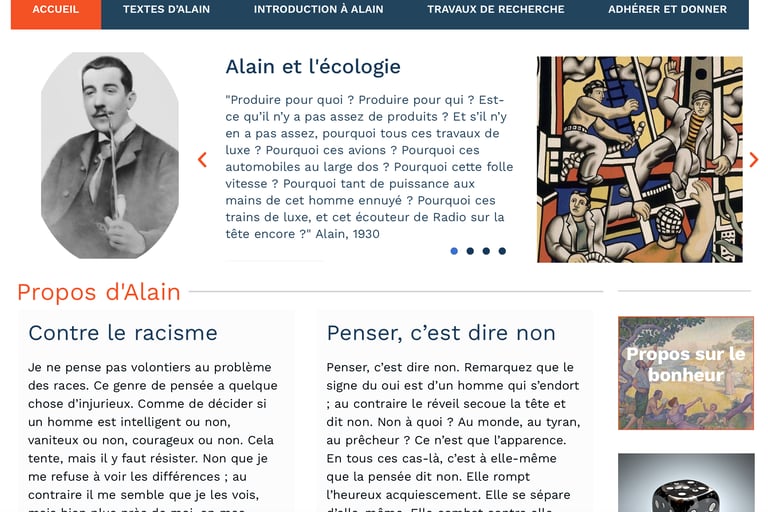 Il faut donc lire Alain, comme il faut lire Platon. Le site de l'association le permet, mais des lectures publiques existent aussi, des lectures qui précèdent des discussions. C'est ce que le vice-président de l'association Pierre Heudier anime régulièrement.